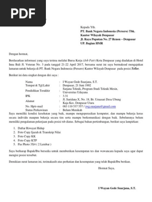 Dec 16, 2020 · bni di tetapkan menjadi bank negara indonesia 1946 dan statusnya menjadi bank umum milik negara. Surat lamaran kerja itu diperlukan untuk semua kalangan dalam hal melamar pekerjaan. Surat lamaran 3 bank bni. Foto full pose 4x6 (5 lembar) besar harapan saya agar bisa diberi kesempatan untuk bisa bergabung menjadi bagian dari bank bni 46 dan turut membangun negeri. Dari sekian banyak peluang kerja yang ada, penerimaan di bank bumn ini menjadi salah satu yang favorit di kalangan pencari kerja non berpengalaman.